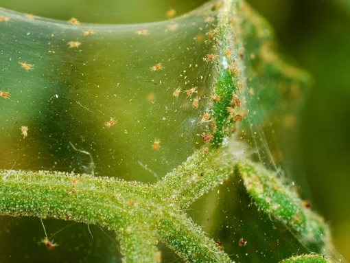Fine webs indicate a spider mite infestation. Symptoms include tiny discolored spots on leaves and delicate webbing. Treat immediately using insecticidal soap, neem oil, or by rinsing the plant thoroughly with water.